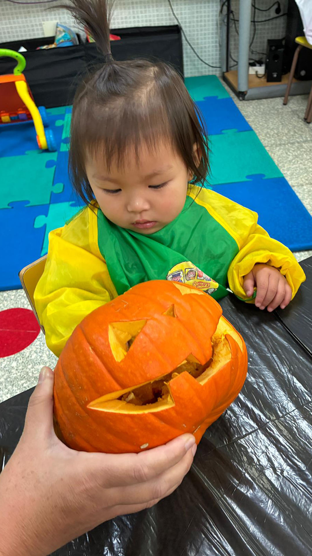 Para alumnos de 1 año, donde manipularon calabazas y materiales de Halloween para estimular sus sentidos.